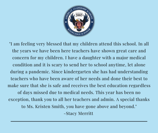 In 2012 she joined American Leadership Academy to help open the Anthem campus. American Leadership Academy. May you take some time to reflect on this.